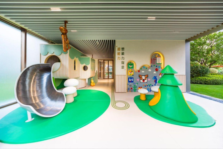 首创婴幼儿主题架空层,圆角设计,让2岁以下的小朋友在蘑菇椅子、森林滑滑梯上玩耍也不用担心磕碰。
