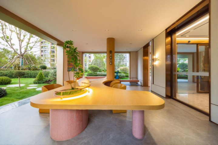 更妙的是,从架空层往外看,园区中央景观尽收眼底,让自然突破了空间的限制,孩子的欢笑和邻里的交谈,都能在此交融。